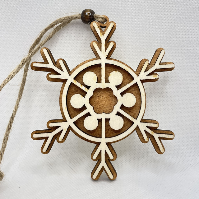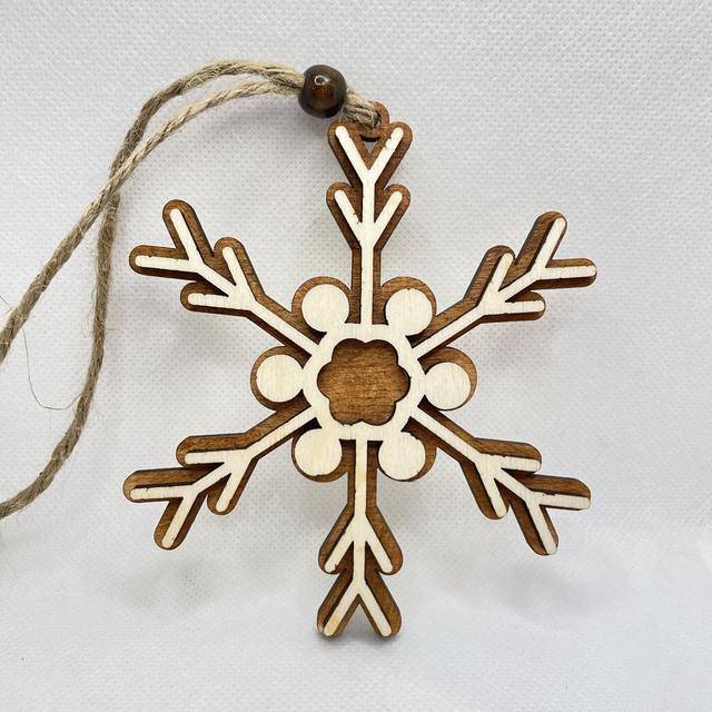 Eine Schneeflocke aus Holz ist der natürlichste Schmuck für deinen Christbaum.